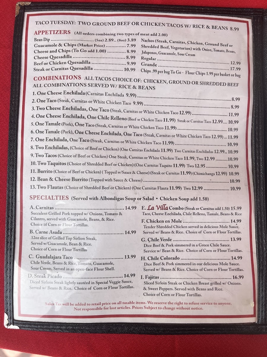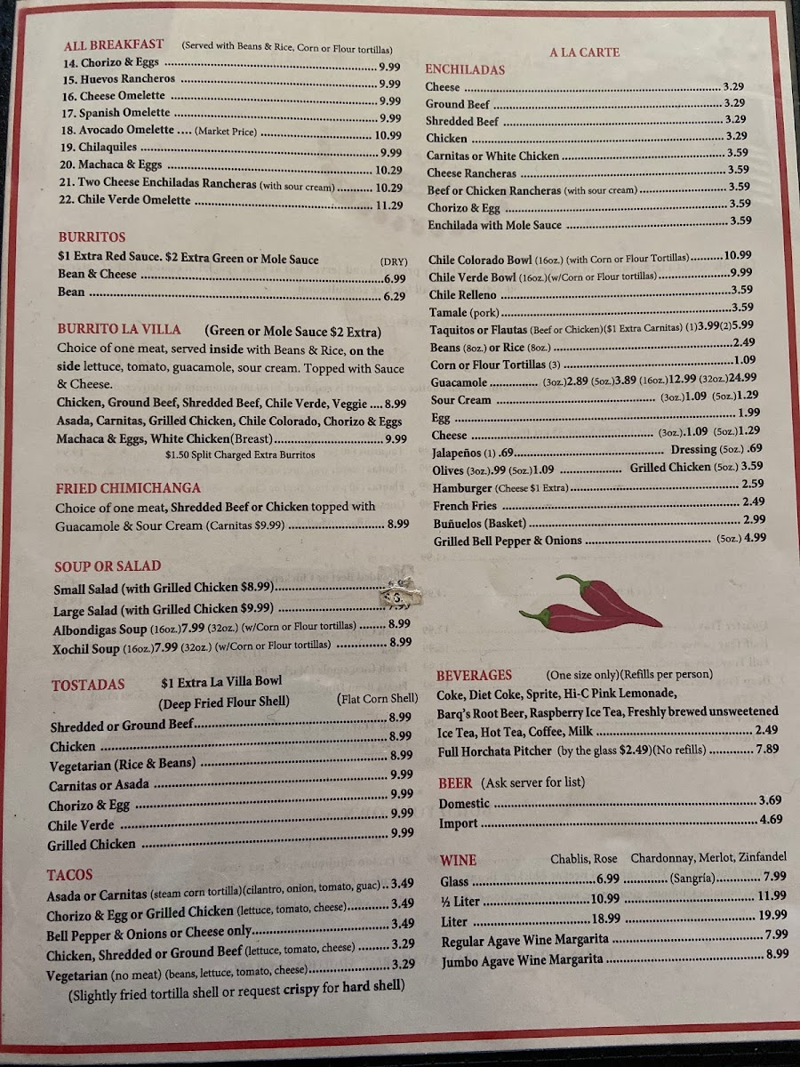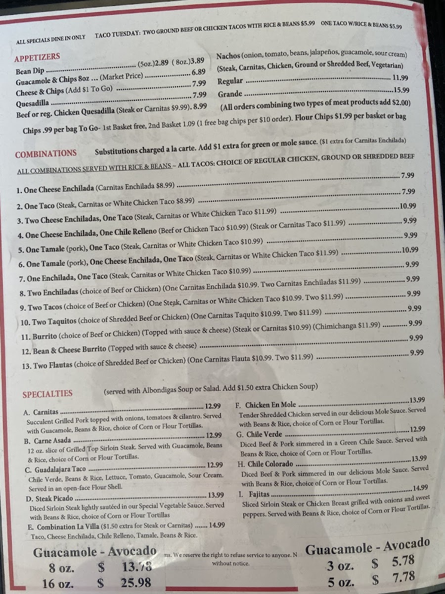 La Villa is celebrated for its home-style Mexican dishes that never compromise on authenticity. The menu offers a plethora of options sure to satisfy any palate. Whether you are diving into the well-seasoned steak picado, perfectly paired with crispy, freshly made tortilla chips and zesty salsa, or savoring the inviting flavors of the fried tacos (a favorite for many, including delighted customers like Paul “MrUgly” Nolan), the meals here are crafted with care and tradition. For those with a penchant for something savory, the Chile relleno is a must-try, even if a few patrons noted it could benefit from a little less batter and a little more filling.