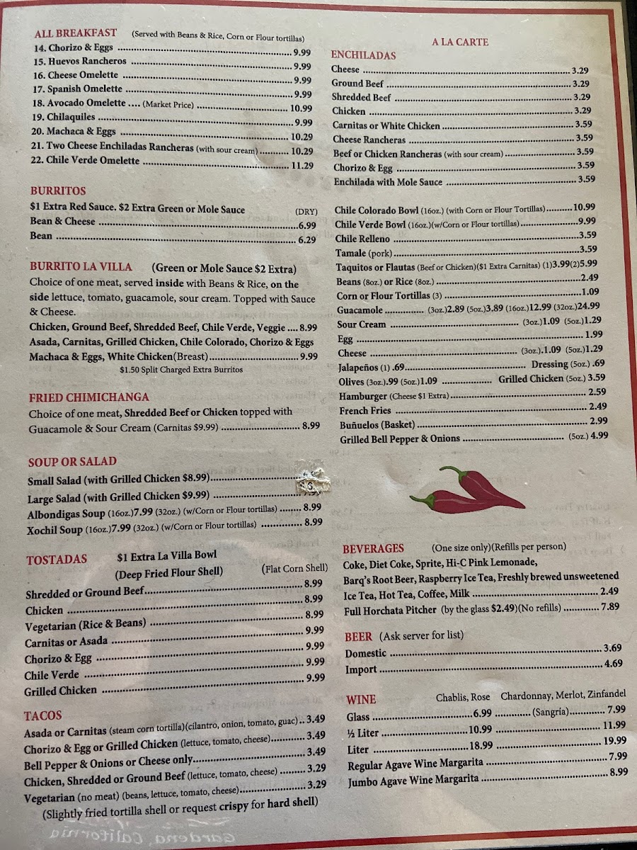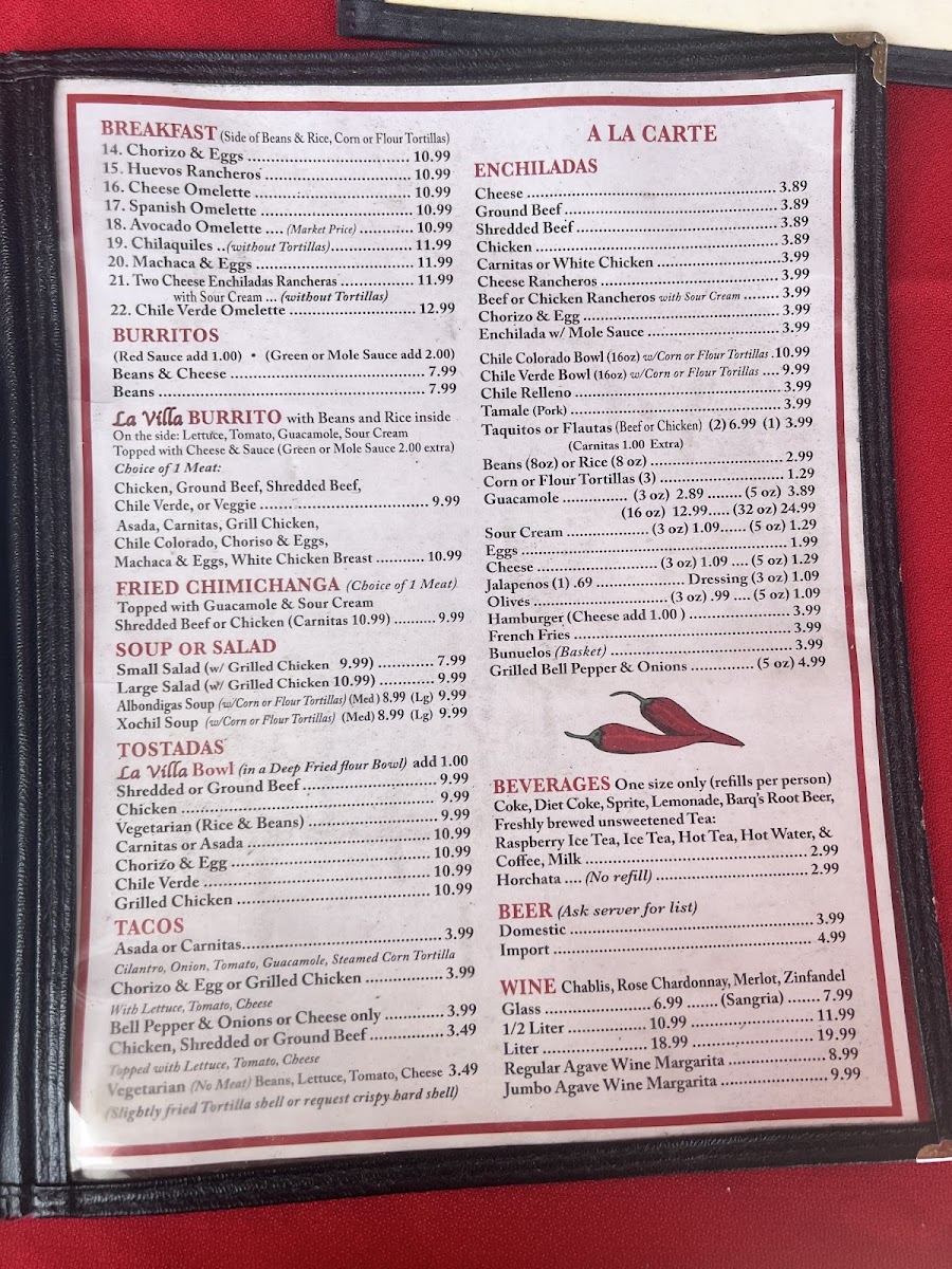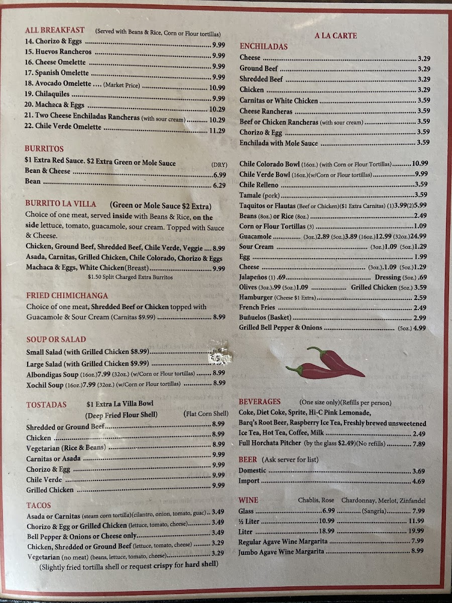 La Villa is celebrated for its home-style Mexican dishes that never compromise on authenticity. The menu offers a plethora of options sure to satisfy any palate. Whether you are diving into the well-seasoned steak picado, perfectly paired with crispy, freshly made tortilla chips and zesty salsa, or savoring the inviting flavors of the fried tacos (a favorite for many, including delighted customers like Paul “MrUgly” Nolan), the meals here are crafted with care and tradition. For those with a penchant for something savory, the Chile relleno is a must-try, even if a few patrons noted it could benefit from a little less batter and a little more filling.